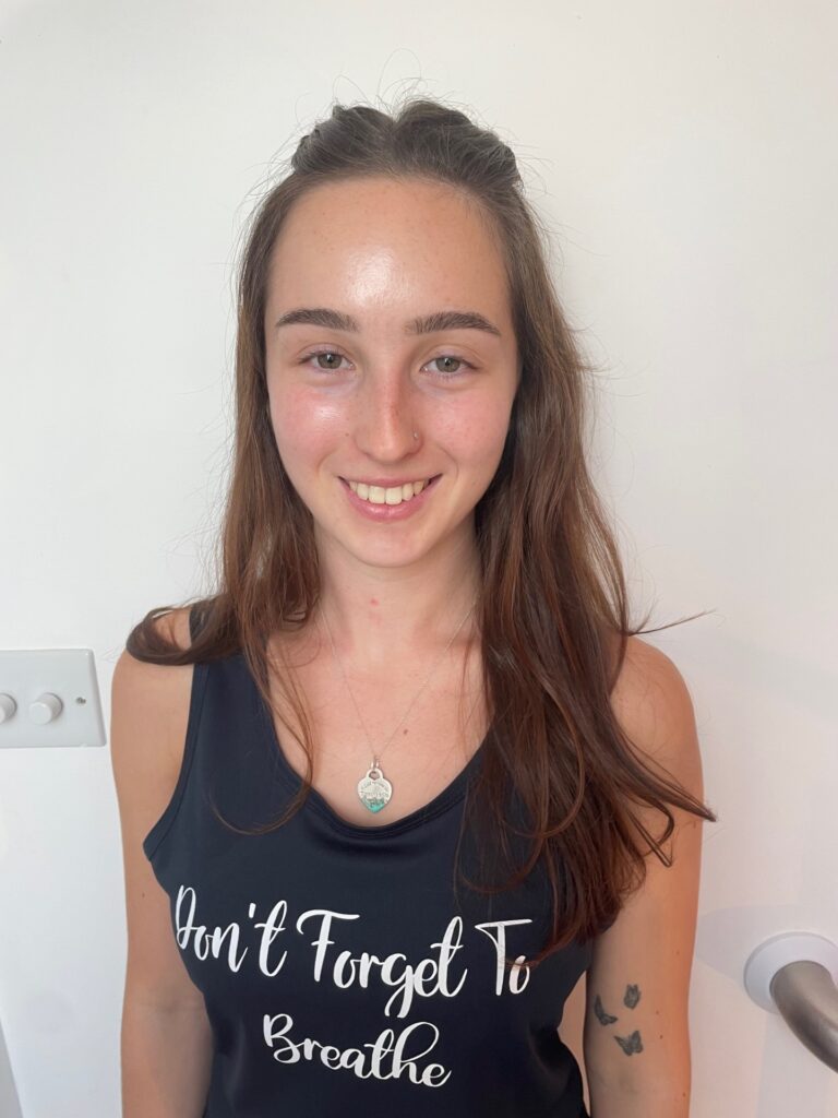 Mia is our physio assistant. She started Pilates with us back in April 2024 and is excited to now be part of our team. From the Pilates classes, as well as her background she has developed a passion for helping others and wants to progress in a career within the health and wellness world.